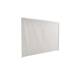 In direct sunlight or in the rain, enjoy your exterior in any situation! Protect yourself from the sun with the Clima curtain designed to be attached to the Clima 313cm x 358cm bioclimatic pergola, the 3.6m Clima curtain will allow you to enjoy your family meals in all weather, easily blocking the wind, small rain showers or blazing sun. Opaque, it will also allow you to create a private and convivial dining area away from the eyes of your neighbors. It is easily adjustable in 4 different heights to adapt according to your needs and activities. Modular, it can be attached to either the right or left side of your pergola. Convenient and easy to combine The light colour of the curtain and its aluminum and textilene design allow it to preserve the design style of your Clima pergola, bringing style to your exterior while allowing you to combine it with most garden furniture. Combine it with the 313x358cm Clima pergola for a perfect installation. Simple maintenance Made of textilene, the curtain is easy to maintain every day. A damp cloth and a neutral soap are enough to clean it. In winter, it is advisable to detach the curtains from the pergola and keep them away from humidity.