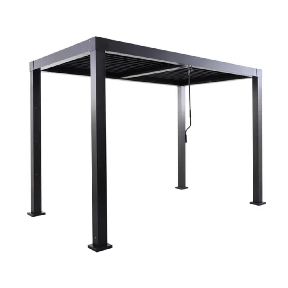 In direct sunlight or in the rain, enjoy your exterior in any situation! Your exterior always operational Live in total harmony with your environment under the Clima bioclimatic pergola. Harness the natural light and warmth of your climate while protecting yourself from rain and wind with this adaptive pergola. Orient its two blocks of blades to bring shade to your patio and interior, reducing heat during your outdoor meals. Its aluminum blades, once tilted, create a light cooling air current under the pergola, letting hot air escape. In case of rain, close the roof of the pergola completely and keep the spirit serene; the pergola is equipped with a drainage system with a flow of water into the feet of the structure. Tilt the blades vertically when you want some light and heat on your patio and in your home. Convenient and easy to combine The contemporary design of the clima bioclimatic pergola brings style to your exterior while allowing you to combine it with most garden lounge whether in terms of materials and shapes (wood, synthetic materials, metals), but also in terms of uses (garden lounge, dining table, outdoor kitchen). With its blinds sold separately, dress your pergola with additional protection against blazing rays or facing eyes. This dark grey colour version will bring out your exterior decoration and allow you to protect a table of 4 to 6 people. Simple installation and maintenance every day Made of high-strength aluminum, the Bioclimatic pergola attaches to the ground with its four feet on the flat surface of your choice in your garden, to withstand the storm and always have a space protected from the elements. Once installed your bioclimatic clima pergola is easily cleaned with soapy water that will bring out its shine. Feel free to use your garden hose to reach the highest areas for easy maintenance. With its simple installation process and easy upkeep, you can enjoy your outdoor space with peace of mind knowing that your pergola is durable and reliable. So, whether you want to relax in the shade or soak up the sun, the Clima bioclimatic pergola has got you covered in any weather condition.