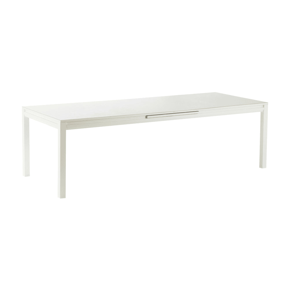 A trendy and functional garden table that unfolds in the blink of an eye to comfortably accommodate your guests. A warm meal in the garden Designed to adapt to your needs, the Naterial Odyssea II easy table is modular. This garden table comfortably seats 10 people, and has a carefully concealed asset: An automatic extension allows you to extend it with one hand to accommodate 2 additional guests. Convenient, this system allows you to extend or retract it with one hand. Designed to cope with weather variations, the table structure is entirely made of aluminum. This material, known for both its strength and its lightness, allows you to move the table with ease, while ensuring increased resistance to humidity and rust. Its 4 square feet provide you with increased stability and ample leg room. Simple and modern lines The lines of the Odyssea II Easy table are simple and pure. Its style will easily find its place in your garden or on your patio. Its rectangular top is surmounted by glass tops that give it a modern touch and protect it from stains. Available in several colours, the Odyssea II moka table elegantly dresses your garden and easily pairs with the white Orion Beta II chairs and the white bioclimatic Clima pergola. Finish your meal with a convivial coffee in the white Odyssea corner lounge, to create a complete and harmonious outdoor space. Maintenance tips Practical every day, a damp cloth and a neutral cleaning product are enough to maintain your table. In order to preserve it in a sustainable manner, it is recommended to winterize it in a place protected from humidity, in a garden shed, or using a Naterial waterproof cover. This will prevent any rust or damage caused by the harsh winter weather. With its functionality, timeless design, and easy maintenance, the Naterial Odyssea II easy table will be a stylish and practical addition to your outdoor living space. Enjoy outdoor meals and gatherings with friends and family in style and comfort with this versatile garden table.
