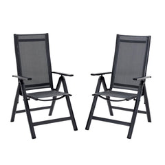 These versatile Naterial Odyssea armchairs are designed for outdoor use and can be adjusted to multiple positions for maximum comfort. The aluminum frame is durable and lightweight, while the textilene fabric is breathable and easy to clean. The anthracite finish adds a modern touch to any outdoor space. Upgrade your patio or deck with this stylish set of multiposition armchairs. Product Description: Set of 2 multiposition armchairs Material: Aluminum frame with powder coating Textilene fabric in 2x2 weave Color: Dark grey