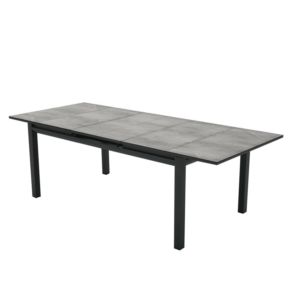 Trendy and functional, the Odyssea Premium modular garden table welcomes your meals outdoors for moments of conviviality. Warm dinners with surprise guests Designed to adapt to your needs, the Naterial Odyssea Premium table is modular. It comfortably accommodates 6 people, and has a carefully concealed asset: An automatic extension allows you to extend it with one hand to accommodate 2 additional guests. Designed to cope with weather variations, the table structure is entirely made of aluminum. This material, known for both its strength and its lightness, is reinforced by stainless steel screws to move the table with ease, while ensuring increased resistance to humidity and rust. Its 4 square feet provide stability and ample leg room. Simple and modern lines Stylish and pure design, the Odyssea Premium table will easily find its place in your garden or on your patio. Its rectangular table top is surmounted by 5 granite glass table tops that give it a touch of modernity. Its anthracite grey shade elegantly dresses your garden and easily combines with the Orion Delta chairs of the same shade and the climatic Bioclimatic pergola for a contemporary dining area. Easy to maintain materials Practical every day, a damp cloth and a neutral product are enough to maintain your table. In order to preserve it in a sustainable manner, it is recommended to winterize it in a place protected from humidity, in a garden shed, or using a Naterial waterproof cover specially designed for this table. With the Odyssea Premium table, enjoy warm dinners with surprise guests in a trendy and functional outdoor setting.
