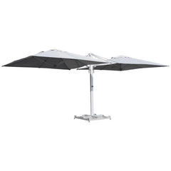 A designer parasol for your large terraces Double parasol for individuals and professionals Designed to provide maximum sun protection, double sombra parasol is ideal for large outdoor spaces. With its generous dimensions, it creates a perfect shaded space to house both a dining area and a garden furniture. Its thick canvas blocks 98% of UV rays, and its aluminum mast ensures it solidity and resistance to rust and bad weather. Qualified for professional use, it can also be used on a hotel or restaurant terrace. A design and functional style Very easy to use, this parasol opens and simply closes thanks to its handle that accompanies the movement. The Double Sombra parasol is functional but also estéthics. Its aluminum firm and gray canvas will bring a design spirit to your exterior. This parasol is perfectly coordinated with designer -style furniture for a harmonious set. Resistant and easy maintenance materials Made of aluminum, this parasol is designed to resist bad weather. Its reinforcement is easy to maintain, and the high quality acrylic fabric offers resistance to discoloration. Its included cover allows you to protect it from dirt during the unused period. To guarantee optimal stability, be sure to louster the parasol with at least 8 weights of 25 kg (not supplied). Repairable, spare parts are available to extend the life of your parasol and ensure its long term use. With its combination of design, functionality, and durability, the Double Sombra parasol is the perfect choice for individuals looking to add style and sun protection to their large terraces, as well as professionals in need of a reliable and high-quality shade solution for their outdoor spaces. Enjoy the outdoors in comfort and style with the Double Sombra parasol.