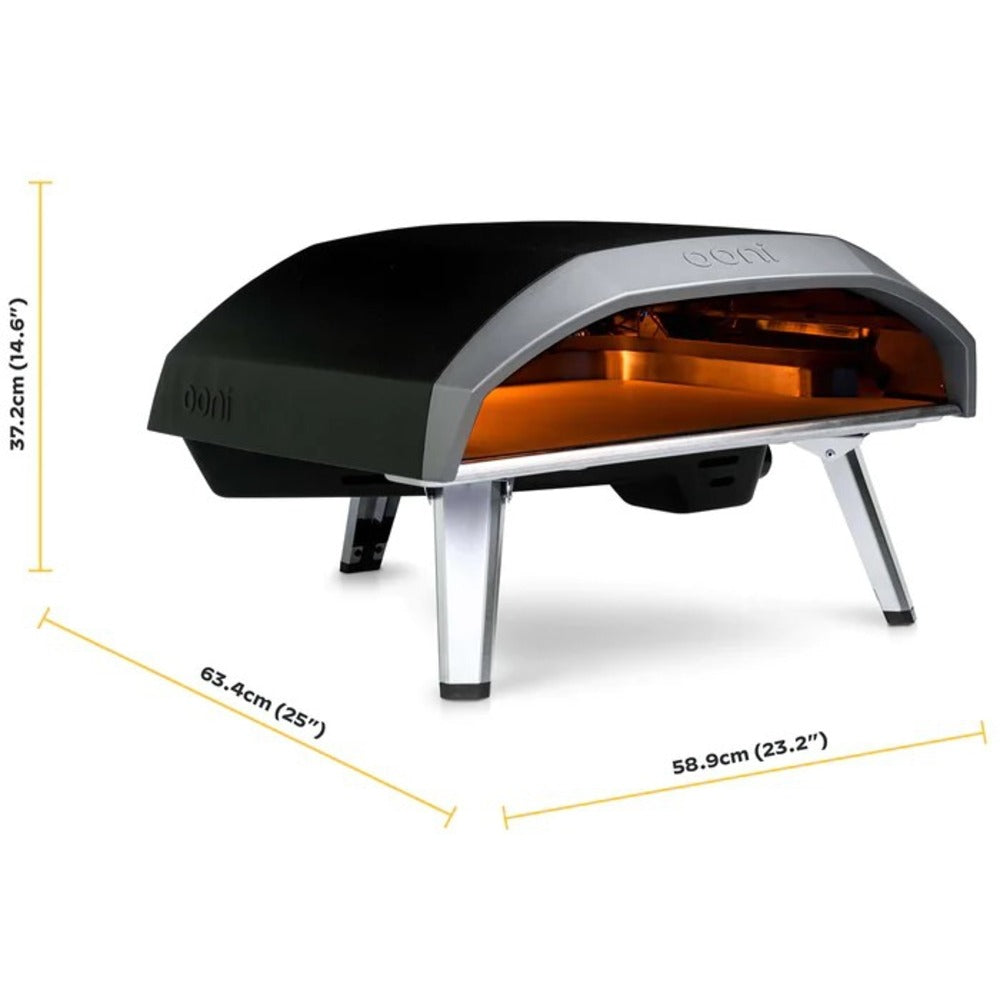 Koda 16 portable gas-powered oven able of cooking authentic stone-baked pizza in any outdoor space in just 60 seconds. The wide opening of the oven and the large cordierite stone cooking surface allows the cooking of pizzas of up to 40 cm diameter. Structured with a stainless steel body insulated with powder-coated ceramic fiber and carbon steel body, Koda is an extremely versatile oven, in fact, it has a well-defined and compact design in order to be practical and easy to use. It has a quick start, temperature control dial, gas control knob for Ooni Koda lighting and flame exit adjustment and folding legs. Handy and light (only 9 kg), it is ideal for dining outdoor and can be used wherever you want. Thanks to Koda 16 you can finally cook with your friends wherever you are easily and cheerfully. Dimensions Width 70 cm, Depth 70 cm, Height 40 cm Materials Steel, Ceramics
