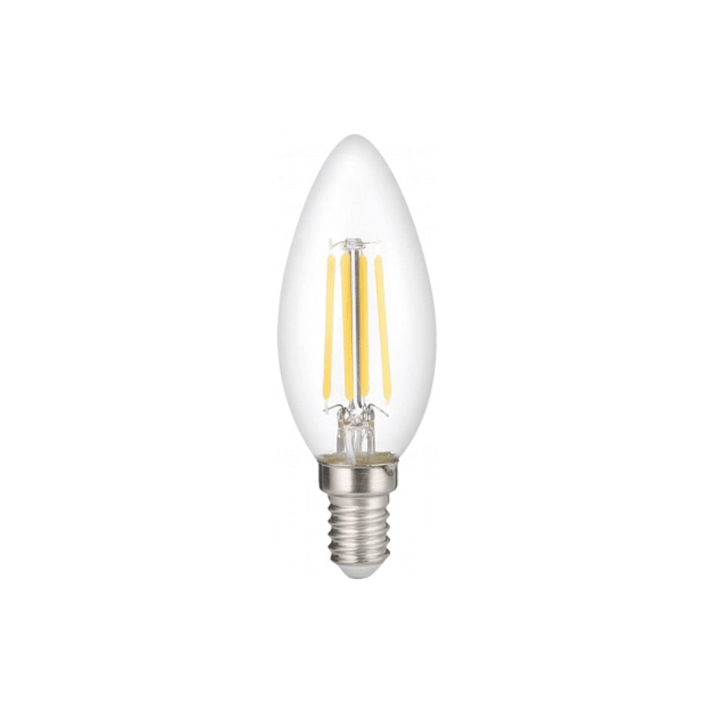 Bulb power: 6W, equivalent bulb power: 49W. Bulb type: C35. Base type: E14, Luminous flux: 730lm. Light color: Warm White with color temperature: 2700 K, Beam angle: 360°, with Filament.