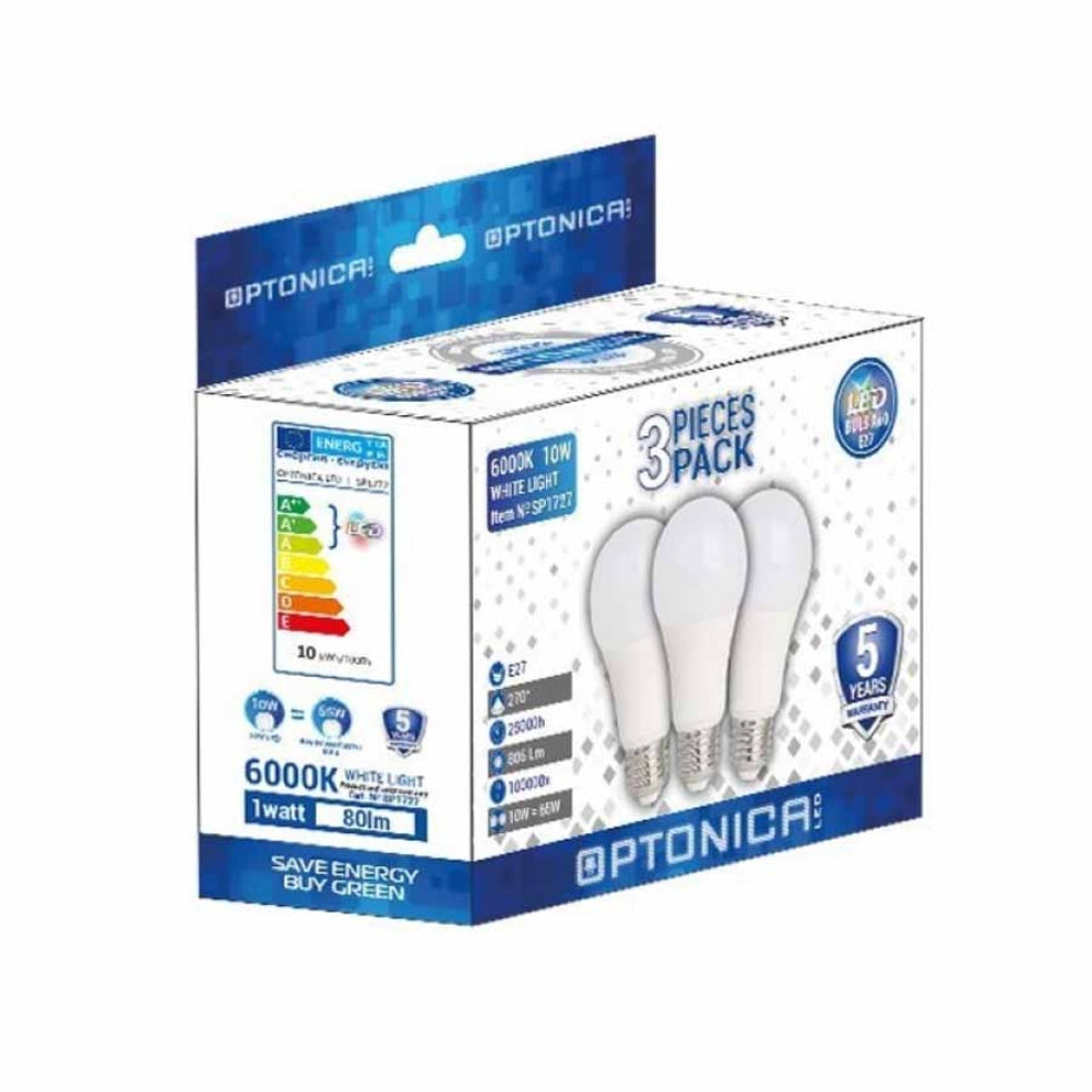 Bulbs power: 15W, equivalent bulb power: 90W. Bulb type: A60. Base type: E27, Luminous flux: 1320lm. Light color: Warm White with color temperature: 2700 K, Beam angle: 270°. 3 Pack