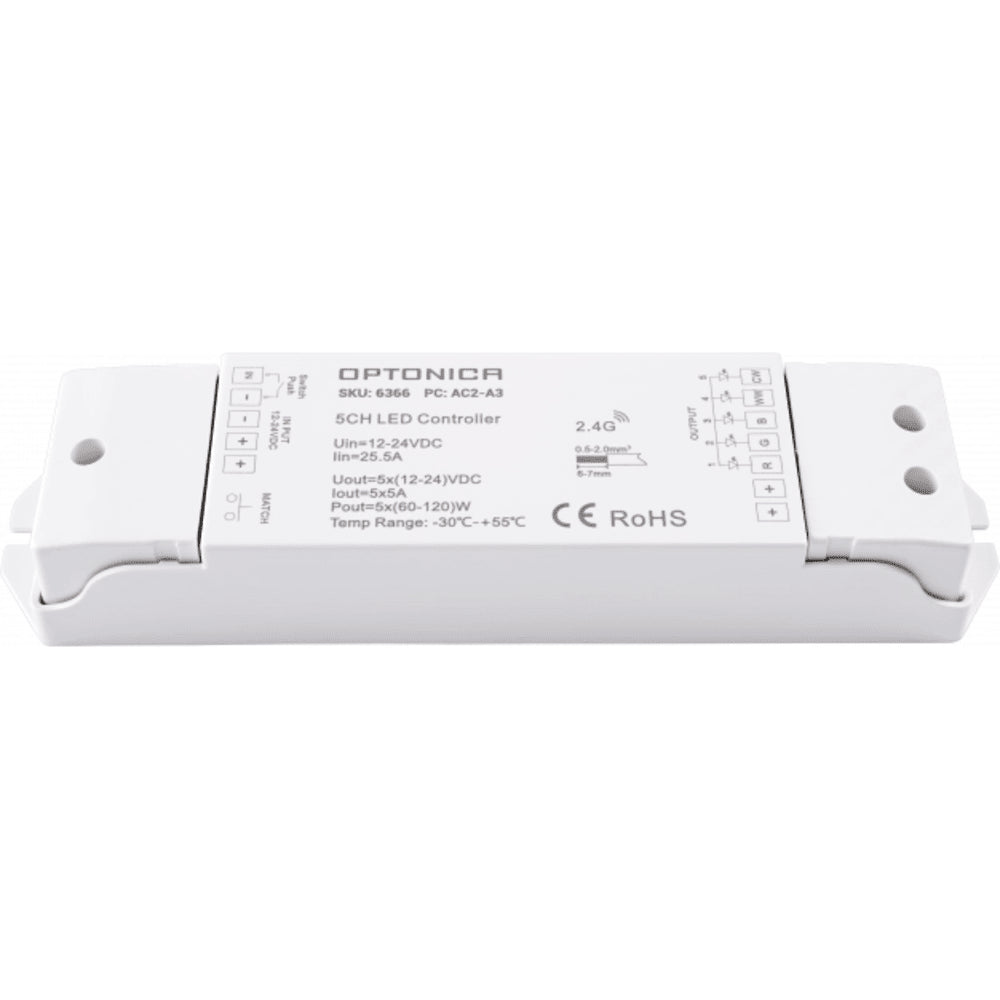 Led Strip light controller. Output voltage: 5x(12-4)VDC. Output power: 5x(60-120)W