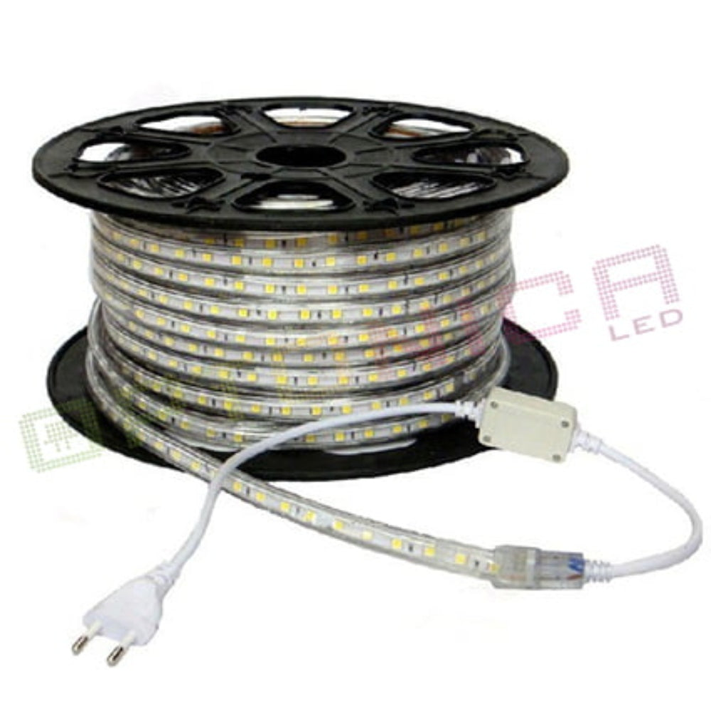 Strip light power: 10W/ m, equivalent power: 80W. Luminous flux: 500lm. Light color: White with color temperature: 6000K, Beam angle: 120°.