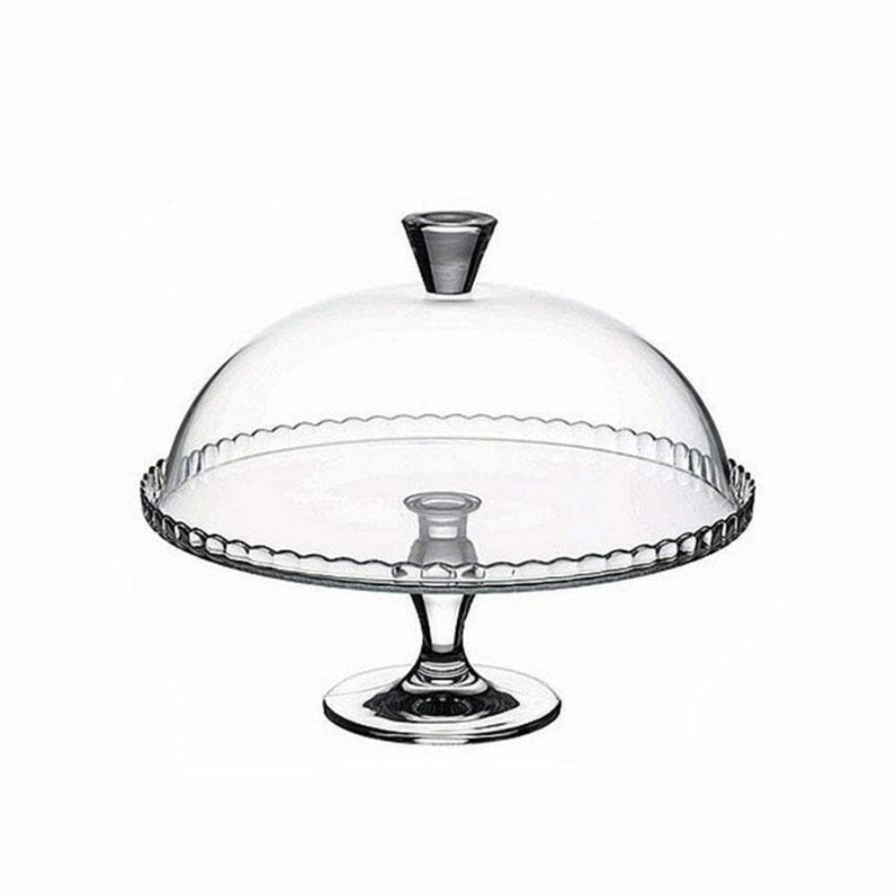 This banquet plateau with glass dome is the ideal way to display, protect and preserve your cakes or treats. Made from durable glass material and domed glass lid with a knob for easy removal. Perfect centerpiece for your table. Made from durable glass material, ideal way to display, protect and preserve your cakes or treats, domed glass lid with a knob for easy removal, perfect centre piece for your table. Approx product dimensions: 32,5cm x 32,5cm x 26,3cm.