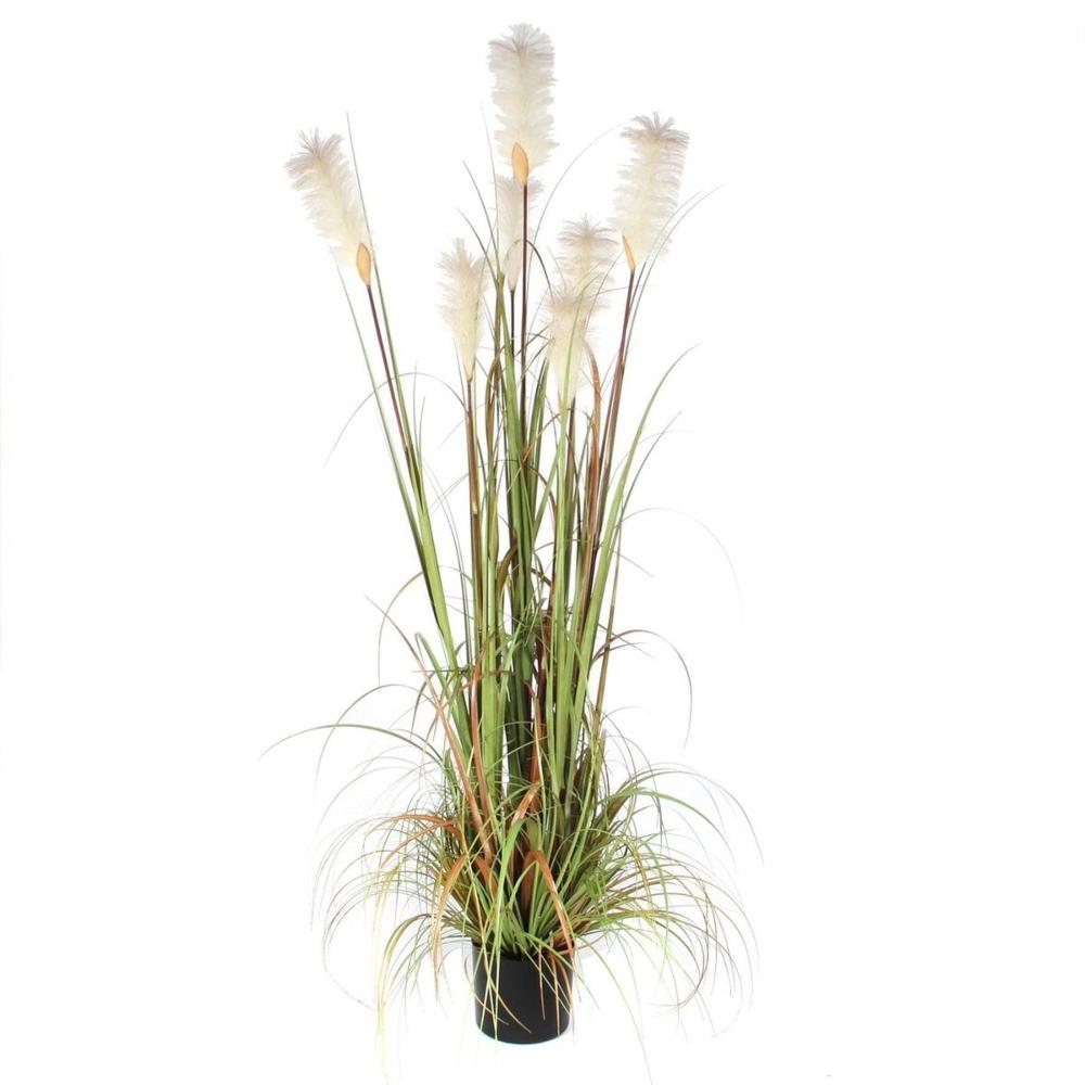 Panicle grass of H81 x Ø45 cm Strands in different shades of green White, naturally bonded plumes that provide a foxtail effect Comes in a plastic pot of Ø11.5 cm This artificial plant does not require any maintenance Ready to enjoy carefree? The artificial plants from Mica Decorations are indistinguishable from the real thing, but do not require any maintenance. This plume grass, also known as pampas grass, is made of high-quality material. The plant consists of several grass stems in different shades of green and panicles of high-quality material that are bound in a natural way. The plant is firmly anchored in a black plastic pot. Place it as it is or use the plastic pot as a sturdy base for a graceful overpot. This artificial plant takes up little space and does not fall out, so you don't have to worry about it. Combine it with other artificial plants and flowers from the collection and bring more greenery into your home.