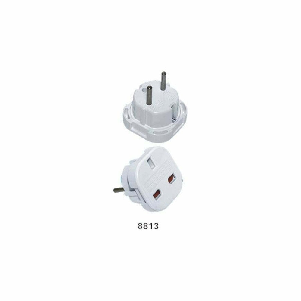 Adapter to convert 3 pin Brtitish Standard Plugs to Euro Plug.