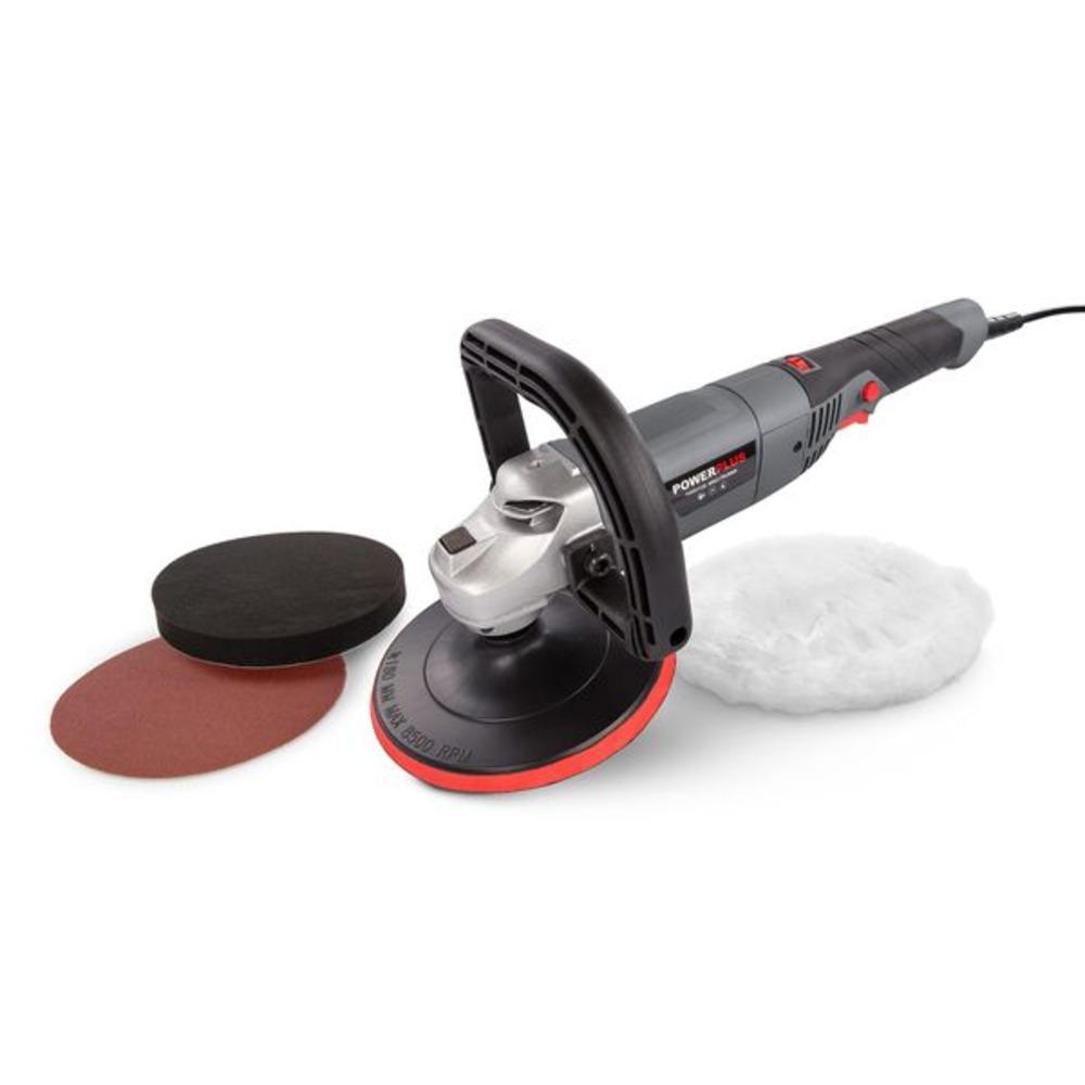 Product Description: This polisher offers 1 200 W of power and a rotation speed of 3 500 min-1 for perfectly polished results. Additionally, the POWE41030 is very user-friendly. Its slow start lets the speed increase at a steady pace until the desired rotation speed is reached. This prevents sudden movements while polishing your car for example. You can adjust the rotation speed to correspond with the material you need to work on. The polisher comes with a Ø180 mm support pad and various accessories, allowing you to use the tool for a wide array of polishing or light sanding projects. You can quickly switch between accessories thanks to the hook & loop system. What is included? 1x angle polisher 1x assembly material set 1x auxiliary handle 1x polishing sponge 1x hex key 1x polishing - sanding pad 1x polishing bonnet - extra fine 1x sheet of sandpaper - round - wood - G120 1x manual Rated power (Pn) max: 1200 W Polishing/sanding surface diameter: 180 mm