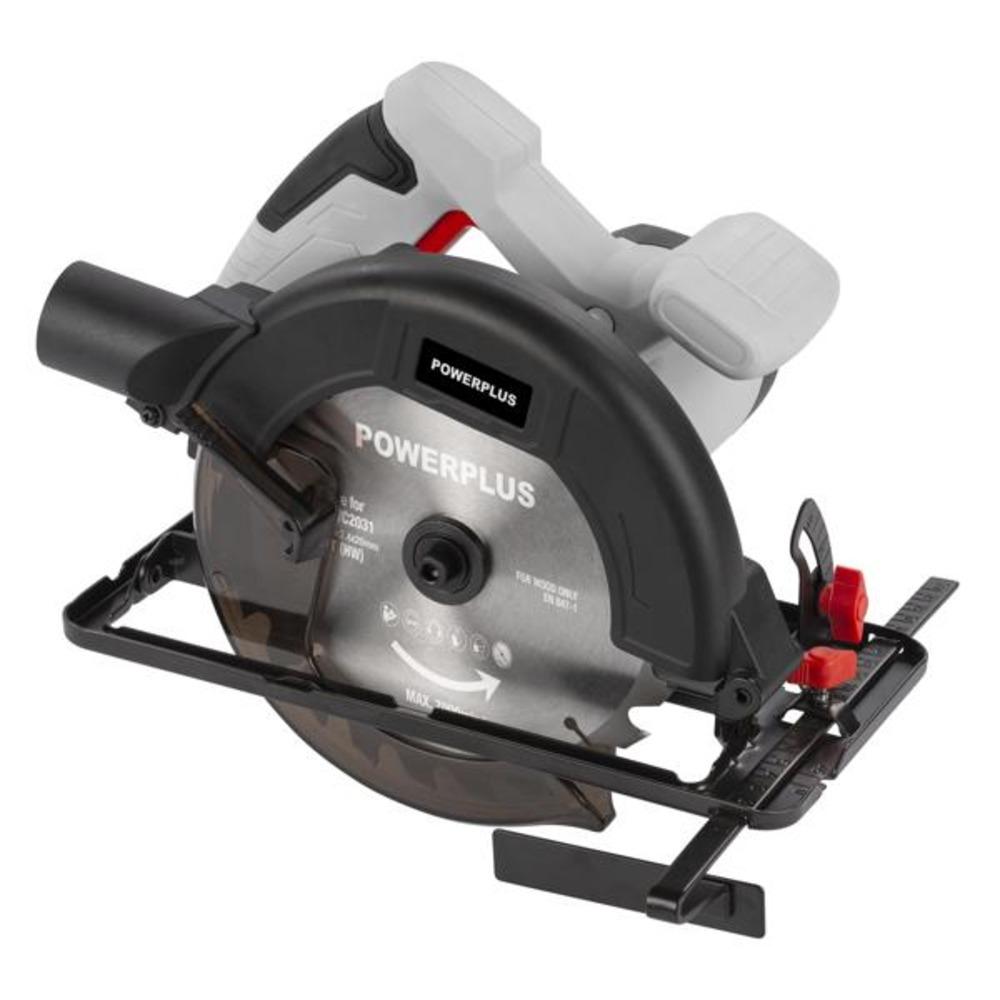 Product Desscription:This electric 1200 W circular saw is perfect for all those large-scale sawing projects. It’s suitable for both straight and mitred cuts. Its 45° tiltable saw blade makes bevel cuts in wooden planks and for baseboards possible as well. What can you do with this circular saw? Use this circular saw to effortlessly cut through wood. It’s mainly meant to make long, straight cuts both in large planks and thicker boards of up to 62 mm. Bevel cuts of up to 48 mm are also possible. Its strong points: Side guide: Use the side guide to cut flush with the edge of your workpiece. Adjustable base: Without any extra tools, the adjustable base can be set at an angle to allow for easy mitred cuts (45° - 90°). This provides a maximum sawing depth of 62 mm at 90° and of 48 mm at 45°. Spindle lock: The spindle lock temporarily blocks the chuck, so switching between accessories is quick and easy. Safety guard: The safety guard keeps your hands at a safe distance from the saw blade. Dustproof switch: The switch is dustproof, which extends the machine’s service life and ensures your safety. Vacuum adaptor: You can connect a vacuum cleaner to the tool with the included vacuum adaptor to catch any dust. That way, you can keep your workplace clean, you won’t breathe in any of the dust and you’ll always have a clear view. Tips & Tricks: Before you start sawing, make sure the blade you’re using is still sharp and not damaged. A damaged blade not only results in rougher cuts, it can also cause serious injuries. Don’t wear your hair down and don’t wear clothes that are too loose. They can get tangled in the tool and cause serious injuries. Its key technical specifications: Rated power: 1200 W Rotational speed: 6000 min-1 Disc diameter: 185 mm Blade thickness: {6923} Max. cutting capacity 90°: 62 mm Max. cutting capacity 45°: 48 mm What is included? 1x circular saw 1x hex key 1x saw blade - wood - 24T 1x side guide 1x vacuum adaptor 1x manual