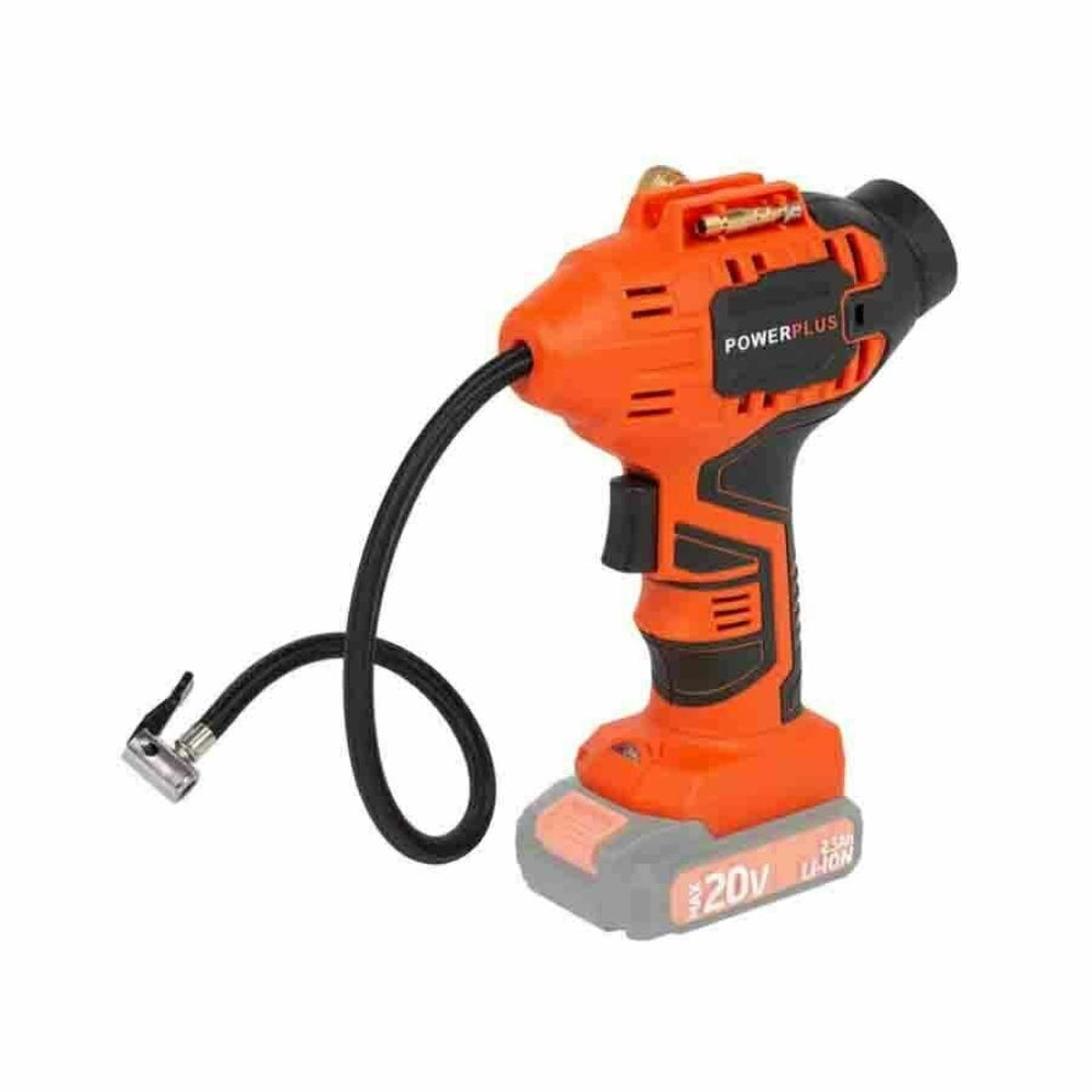 With the help of Powerplus air pressure pump 20V, it is easy to fill e.g. sports balls, air mattresses and car and bicycle tires. The pump has three adapters for which the unit has a built-in storage space. The device has a digital pressure gauge with e.g. automatic stop and correct pressure display (Maximum 8 bar) and LED work lighting. Dual Power air pressure pump 20V is compatible with 20V and 40V batteries P058576