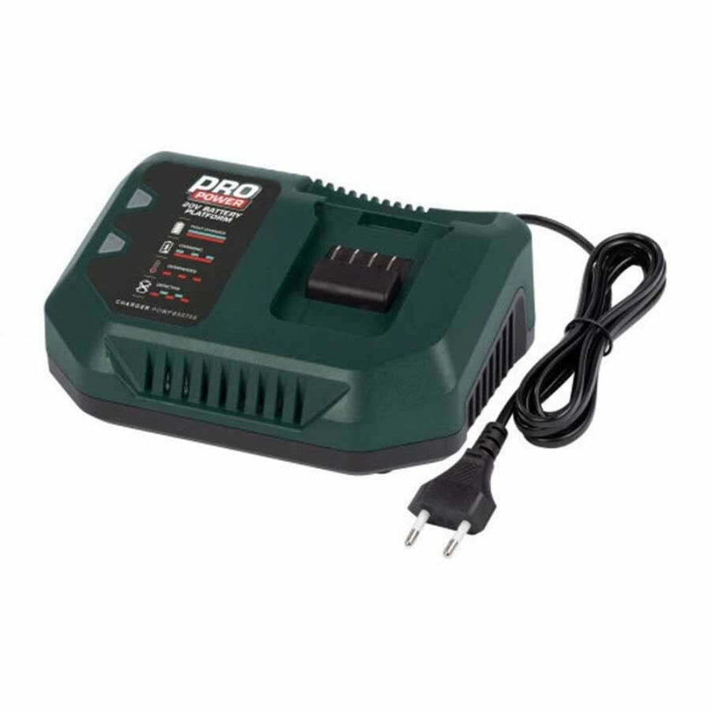 Rechargeable battery charger power plus powpb90700 charges the rechargeable batteries of all tools of the craftsman and garden equipment from the pro power 20v system. It features a compact size and a long power cord. Active air cooling ensures long battery life. The indicator lights warn you when the battery is charged. The green and red lights always inform about the current charging status. A 2.0 ah battery charges the battery within 40 minutes, and a 4.0ah battery after 45 minutes. The charger has a cable length of 1.8 m, which is very practical and flexible. The intelligent charging method spares the batteries when charging and thus ensures their long life. The green and red lights always inform about the current charging status or warn when the battery cannot be charged due to very high temperatures. The charger is compatible with 20v batteries from the pro power battery platform. The pro power series of machines is specially designed to meet the needs of the professional. These superb tools offer high performance and can handle the most demanding tasks. With pro power you can be sure of extremely durable and reliable tools. Type powpb90700 Nominal input voltage and frequency 100-240 v ~ 50/60HZ Rated output voltage and charging current 21 v, 6 a Battery type 20 v lithium-ion battery pack Dimensions: 19 x 8,3 x 18,3cm Weight 0,7kg