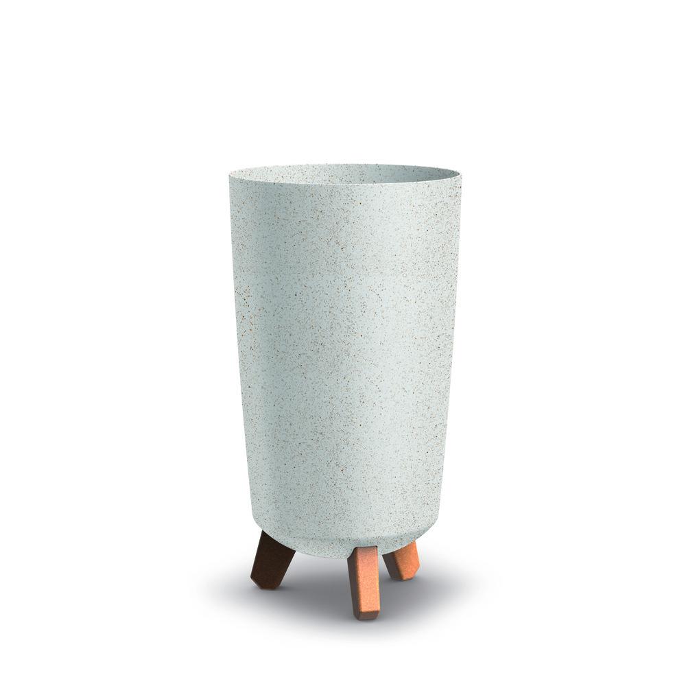 Tall planter that contains up to 33% of natural wood. By wooden looking legs elevates flowers and plants for greater eye-catching effect in modern interiors, balconies and garden scapes.