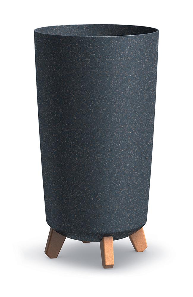 Tall planter that contains up to 33% of natural wood. By wooden looking legs elevates flowers and plants for greater eye-catching effect in modern interiors, balconies and garden scapes.