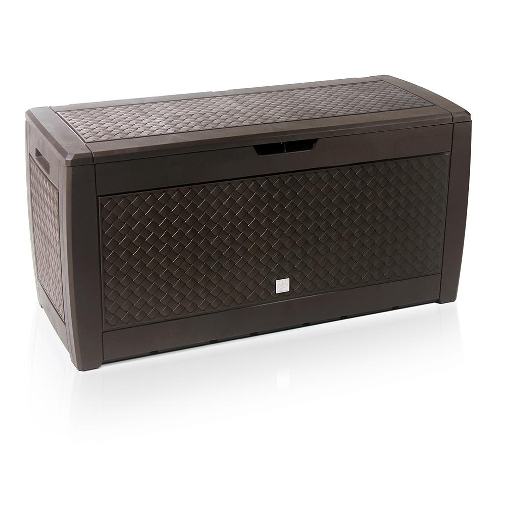 The "Matuba Wood Design Garden Storage Box Dark Brown" is a storage solution designed for outdoor use. It is made of durable and weather-resistant plastic material with a dark brown finish that imitates the look of natural wood, but with the added benefits of being more lightweight and easy to maintain. Plastic Storage Box: A storage plastic box is a type of container made of plastic that is designed for the purpose of storing and organizing various items. Plastic storage boxes come in a wide variety of shapes, sizes, and colors to accommodate different needs and preferences. One of the primary benefits of using plastic storage boxes is their durability and resistance to moisture and other environmental factors. They are also lightweight and easy to move around, making them convenient for both home and office use. Contemporary Design: refers to the style of interior and product design that is popular and in vogue at the present time. It is characterized by its simplicity, clean lines, and a focus on function and practicality over ornate decoration. Contemporary design is often associated with minimalist aesthetics, with a focus on creating spaces that are uncluttered and spacious. High-Quality Plastic: refers to a type of plastic material that is manufactured to meet specific standards for strength, durability, and resistance to wear and tear. This type of plastic is typically made from polymers that have been specially formulated to withstand environmental factors such as exposure to sunlight, moisture, and temperature changes. They are environmentally friendly, UV protection and sustainable