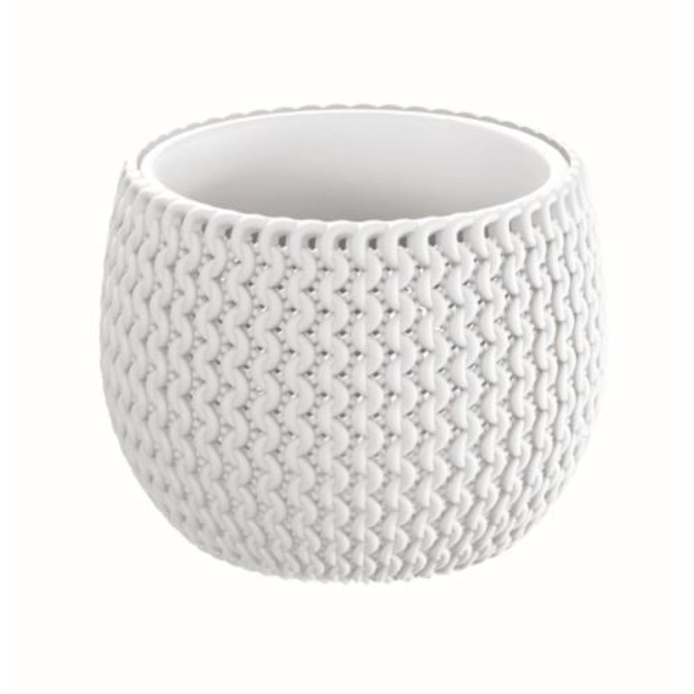 The SPLOFY BOWL flower pot with an insert made of plastic (polypropylene). UV resistant The clear, spatial openwork weaves of the Splofy collection beautifully reflect the light, which exposes the structure. The whole effect of the detail evokes the aesthetics of unique handmade products created at home. Their texture is noteworthy here - giving the impression of pleasant to the touch, faithful imitation of loosely braided soft thick yarn, reminiscent of traditional knitting patterns, which successfully fits into the current trends. The collection in delicate neutral and pastel colors is currently a real hit on the market.