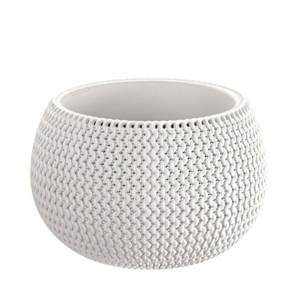 The SPLOFY BOWL flower pot with an insert made of plastic (polypropylene). UV resistant The clear, spatial openwork weaves of the Splofy collection beautifully reflect the light, which exposes the structure. The whole effect of the detail evokes the aesthetics of unique handmade products created at home. Their texture is noteworthy here - giving the impression of pleasant to the touch, faithful imitation of loosely braided soft thick yarn, reminiscent of traditional knitting patterns, which successfully fits into the current trends. The collection in delicate neutral and pastel colors is currently a real hit on the market.
