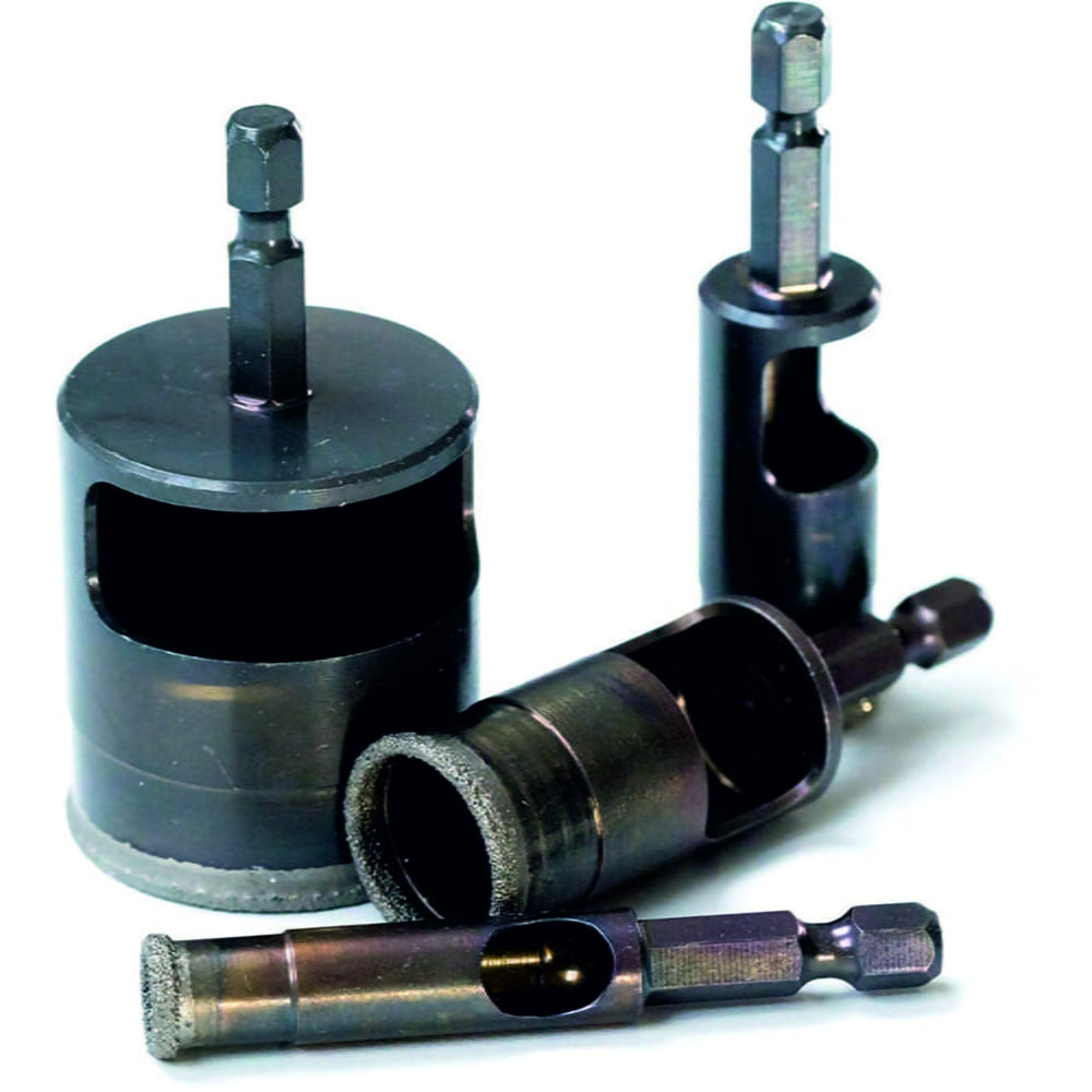 A unique product that requires no drill guide, minimal coolant and fast, easy waste ejection which allows for continuous multiple hole cutting. High grade exposed diamond for fast, smooth cutting. Excellent performance on cordless and corded drills. Should be dipped in water before drilling and every 5 seconds thereafter to ensure prolonged life. Suitable for very hard tiles, porcelain, ceramic, granite, marble, glass, slate and stone.