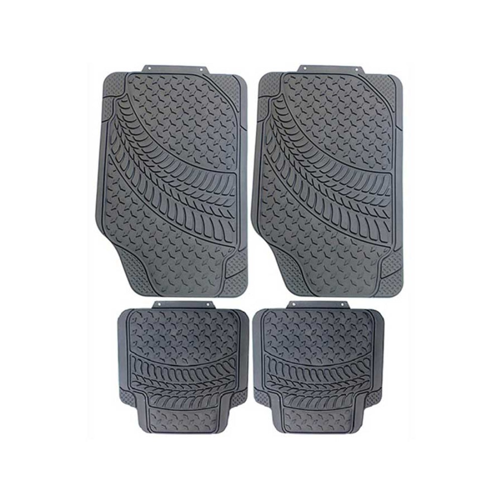 This four-piece rubber mat set is crafted to protect your car's original interior. Each mat showcases a unique tyre tread pattern, providing excellent grip, especially on rainy days. The front mats are 66 x 45 cm in size, and the rear mats measure 44.5 x 43 cm each.