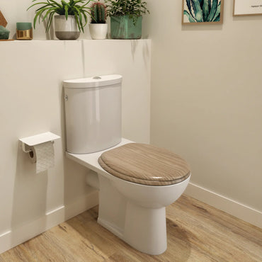 This toilet seat fits all standard WCs thanks to its adjustable hinges. Made in FSC wood, a natural and resistant material. Its metal hinges assure more durability
