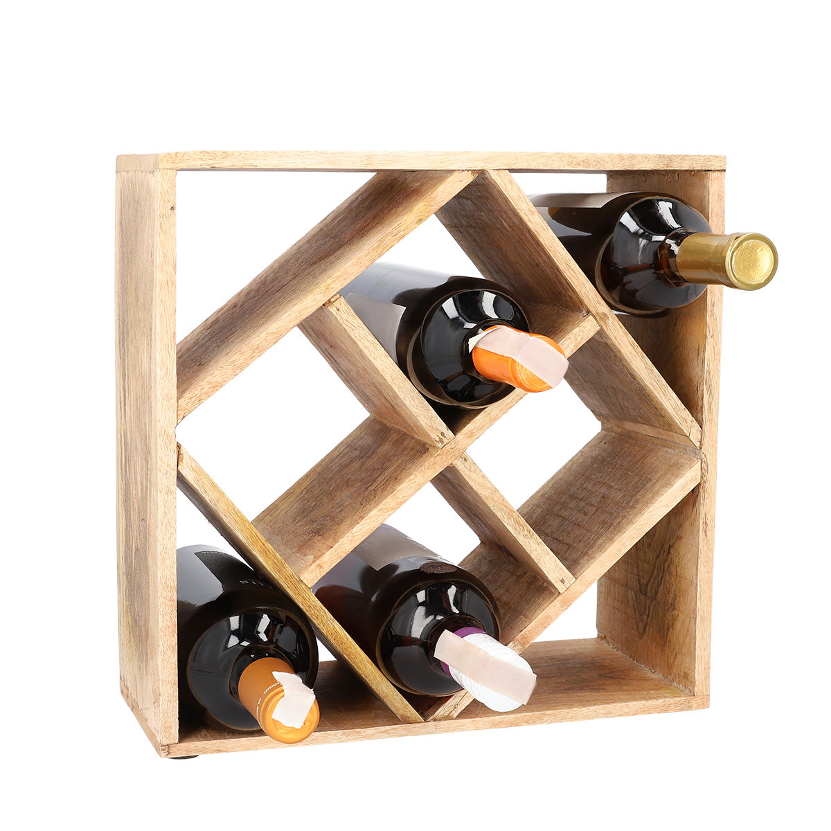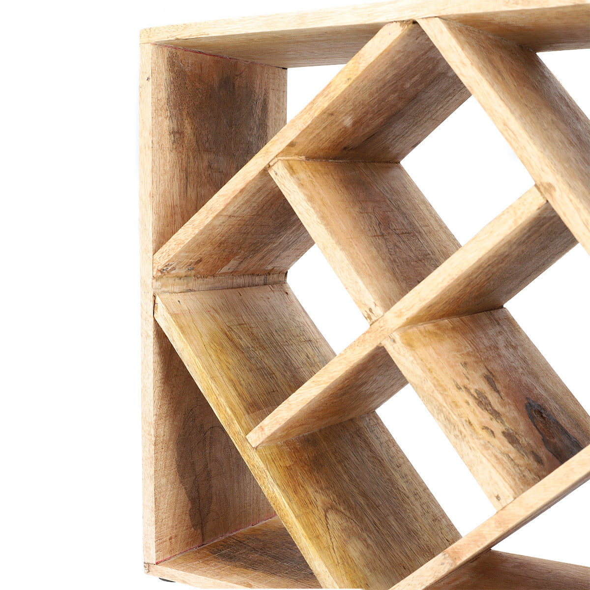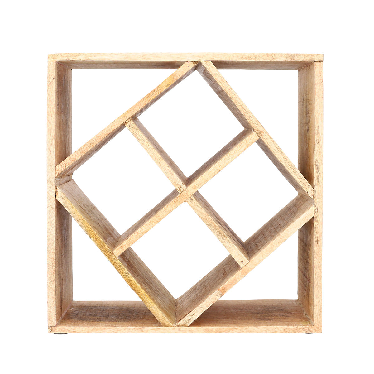Purpose Take care of the aesthetic display of your wines with the SJAL MANGO stand. It will work great as a wine rack, although it can equally well serve as an organiser for other types of beverages, as well as glass bottles with juices and homemade syrups. Features The SJAL MANGO wine rack is characterised by its interesting design. The square stand has another square in it attached to the frame with the corners. This provides 8 spaces for the wine. The dimensions of the product are 33 x 33 centimetres. Material The SJAL wine rack is made of natural mango wood. The material shows a high resistance to scratches, where water and bacteria can lodge, and the product is more hygienic. The use of natural raw material means that particular pieces may vary in shade and grain distribution.