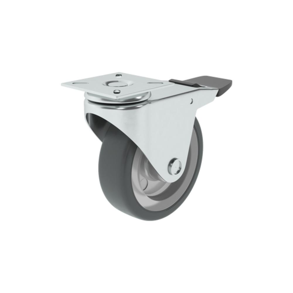 100Mm Grey Tpr Caster Swivel With Brake, Top Plate,With Inner Packing And Sticker
