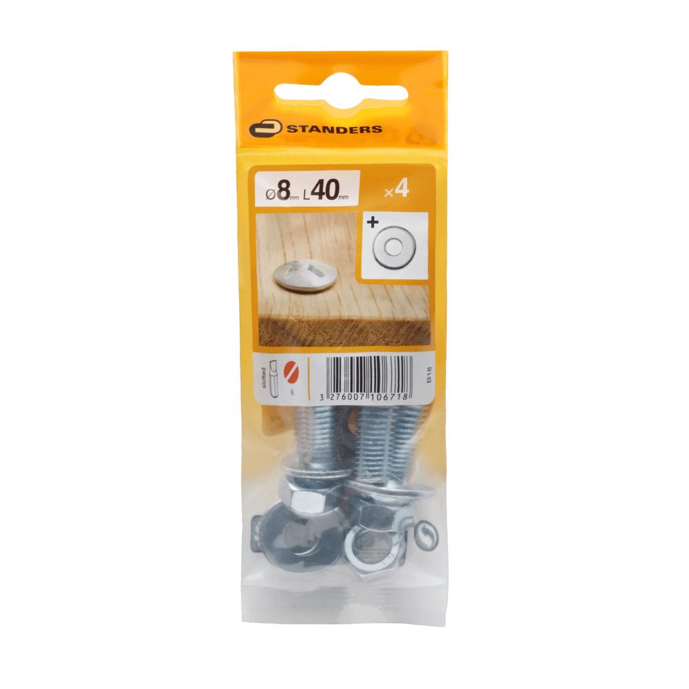 The SCREW NUTAND1WASHER X-SLOTTED STL8X40 4P is a versatile and reliable hardware set designed for various applications. This set includes a B18 screw, nut, and one washer, all made from durable cross-slotted steel. With a size of 8x40, these components offer excellent strength and stability. The steel material is further enhanced with a WZP+CR3 coating, providing resistance against corrosion and wear. Whether for professional or personal use, this hardware set is a must-have for any project. Features: Here are the key features of the SCREW NUTAND1WASHER X-SLOTTED STL8X40 4P: Includes a B18 screw, nut, and one washer Made from durable cross-slotted steel Size of 8x40 for optimal fit WZP+CR3 coating for corrosion and wear resistance Versatile and suitable for various applications Specifications: The specifications for the SCREW NUTAND1WASHER X-SLOTTED STL8X40 4P are as follows: Material: Cross-slotted steel Coating: WZP+CR3 Size: 8x40 Quantity: 4 pieces What's in the box? The SCREW NUTAND1WASHER X-SLOTTED STL8X40 4P package includes: 4 x SCREW NUTAND1WASHER X-SLOTTED STL8X40