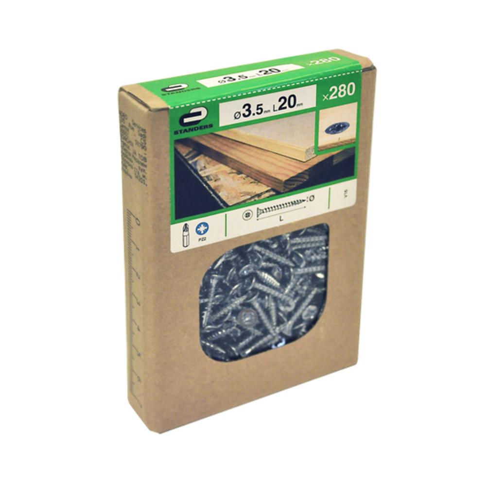 Description: This self-drilling screw for soft wood and agglomerated wood is the ideal screw for small indoor work. It allows to assemble pieces of wood together. You will save time as pre-drilling is not required. Indeed, its tip has been designed to penetrate directly in the wood. Thanks to its countersunk head, this screw is ideal for brackets with countersunk holes. The finishing will be flat and discreet. The fins under the head of the screw prevents loosening. Composition of the product (in %) for customs: 100 Self-sharpening: Yes Tool size: PZ2 Stainless steel type (hardware): Product without stainless steel Main material: Steel Product without brand: No Finishing of product: Zinc-plated Product brand: STANDERS Self-countersink: Yes Screwhead type: Pozidriv Commercial reference: V16-3.5x20-280D0 Type of product: Screw Material type applicability: Wood Self-perforating: Yes Place of use: Indoor Advantage and benefit 2: Thanks to its countersunk head, this screw is ideal for brackets with countersunk holes. The finishing will be flat and discreet Advantage and benefit 1: You will save time as pre-drilling is not required. Indeed, its tip has been designed to penetrate directly in the wood
