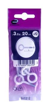 Matrix Code:1557, 12P Screw Eye White Steel 3.5X20, Polybag
