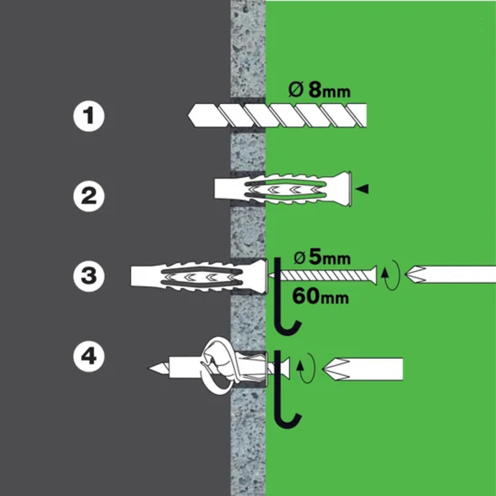 Matrix Code 7_P_S,Nylon Anchor For Multimaterial,With Chipboard Screw Zp 5.0X60,5Pcs In S2 Polybag