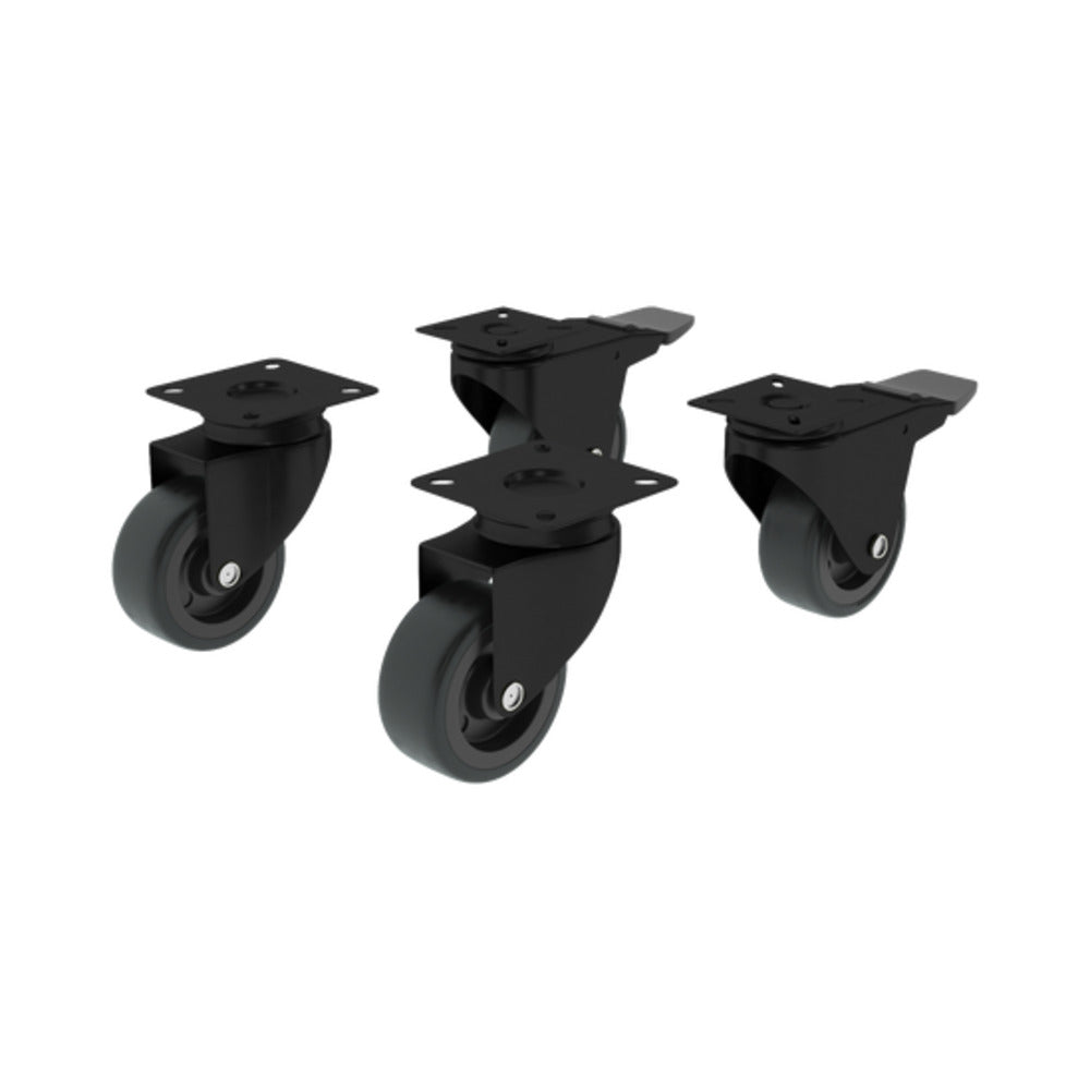 Set 4 Caster 50Mm 360° (2 With Brake) , Plate Anti Slide, Black, 40Kg
