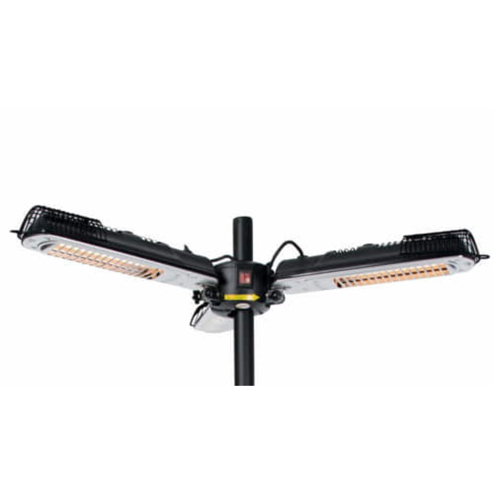 -3,65kg -Sunred Heater Bright Parasol Black/Silver 2000 Watt Settings: 650/1300/2000 Watt -Cable cord: 1,8 m -On/off switch: button -Foldable -Suitable for parasol pole - max 60mm