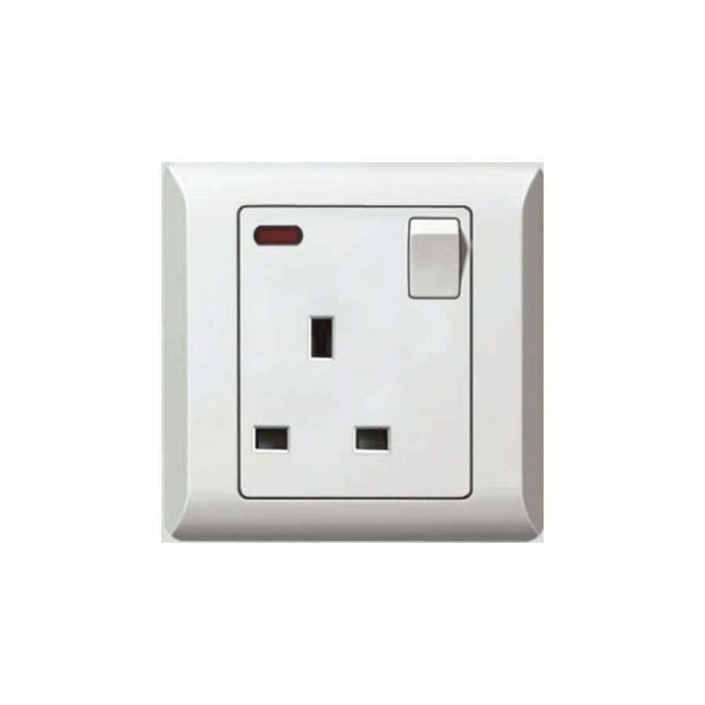 9 x 9cm 1 Gang Switched Socket with Neon.