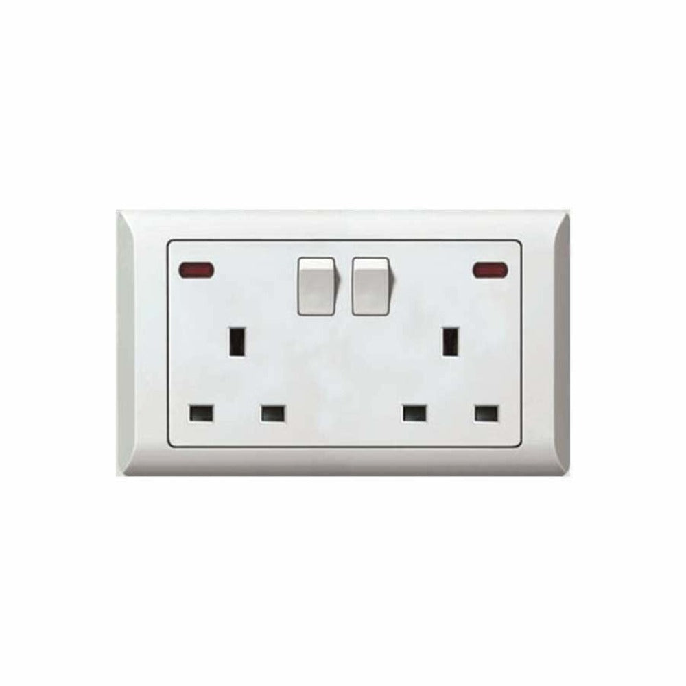 16 x 9cm 2 Gang Switched Socket with Neon.