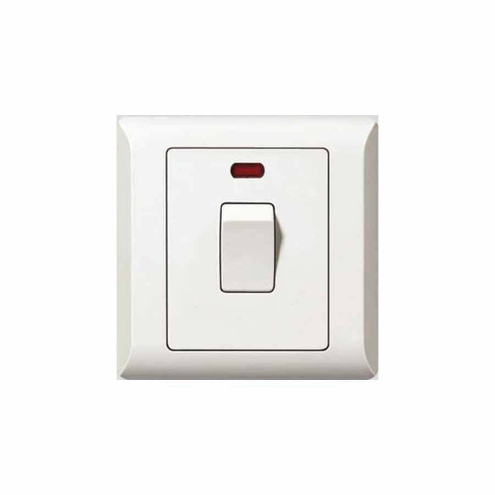 Taili Apex DP Switch 20A 1 Gang with Neon - White is a durable and stylish switch that is designed to handle high power applications. The switch features a neon indicator light that lets you know when the switch is on or off, making it easy to see in low light conditions. It has a 20A rating, making it suitable for heavy-duty use. The white color adds a modern and clean look to your home or office. This switch is easy to install and provides reliable performance for years to come.