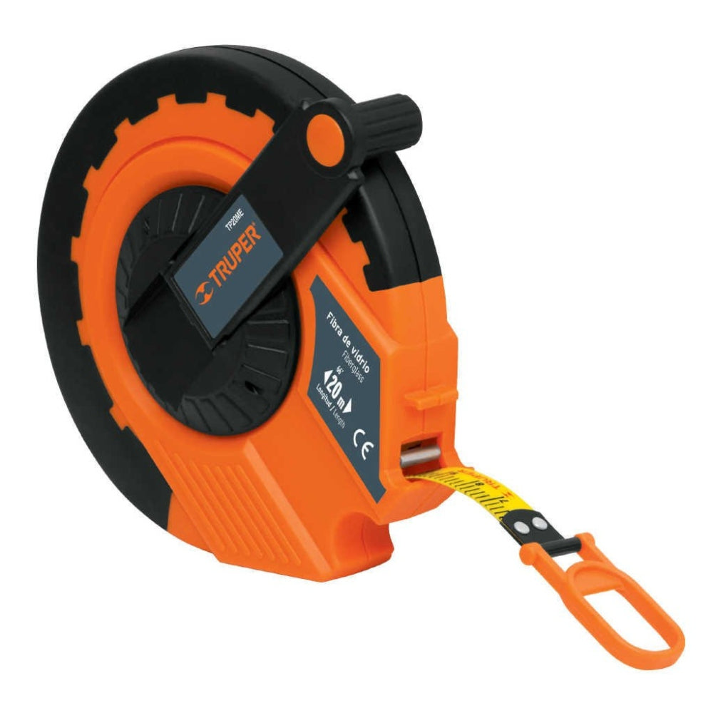 Specifications: Length 20 m (66 ft) Tape width 14.5 mm. Tape thickness 0.47 mm. Scale cm-m / in-ft. Tape color: Yellow. Features: PVC coated fiberglass tape that allows it to be easily wet and cleaned. Housing made of ABS with impact resistant. Uses: Construction, civil engineering, etc.