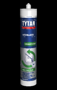 TYTAN PROFESSIONAL ACRYLIC is a paintable elastic sealant for joints between building materials, masonry and plasterboard, subject to small expansions. TYTAN PROFESSIONAL ACRYLIC hardens by drying in the air, seals internal and external joints on porous surfaces such as concrete, plaster, brick masonry, wood. Odorless, clean, tools and any burrs can be washed off with water.