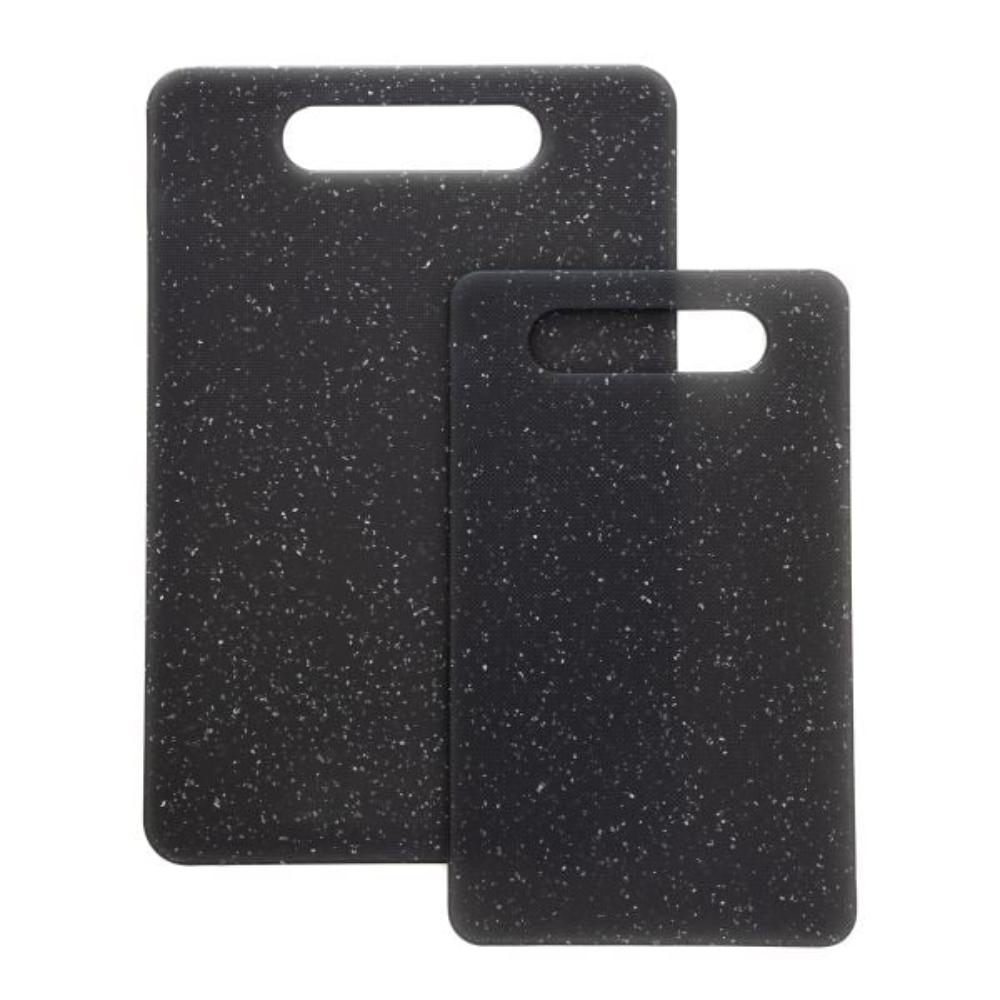 Purpose A board at an affordable price and made in good and satisfactory quality? Or even two in a set? The set of grey VASTO boards is a set that will prove to be a great kitchen helper when cutting your favourite vegetables and fruits! These basic boards will go great in any kitchen setting and will prove to be a must-have when cutting up the produce you need to prepare your showpiece dishes! Features VASTO boards are a basic range of kitchen boards in grey with flashes of white dots. They are comfortable, practical and above all very functional. Both boards have oblong holes so that you can hang them on a hook on the kitchen wall and not worry about where they have gone this time. The set includes a 20 x 30 cm board and a 15 x 20 cm board. Material The set is made of plastic. It is a decent and strong material that will make it easy for you to cut a wide variety of products. The boards can be washed by hand and in the dishwasher.