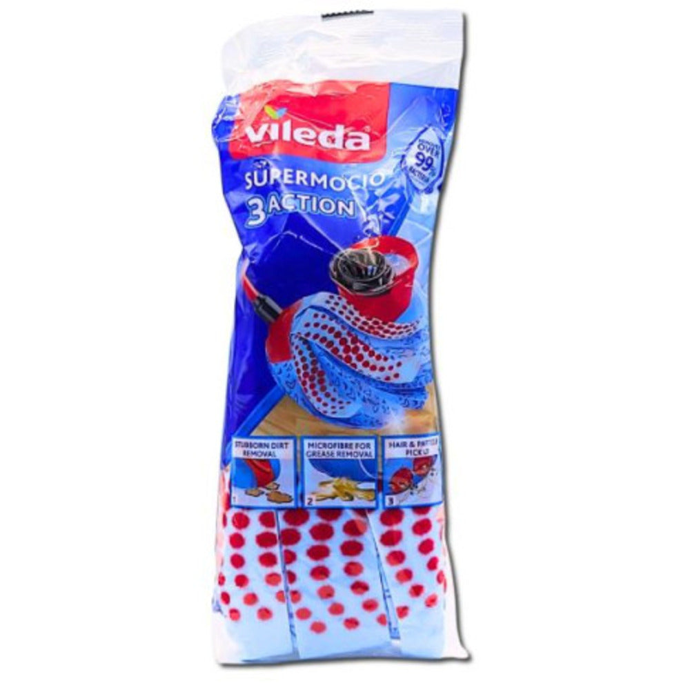 The new 3D Structure, composed of millions of microfibers to collect hair and crumbs, giving the mop an extra duration. The Microfiber, which removes the most stubborn dirt. The Stain Remover, the gentle abrasive that removes the most encrusted dirt without damaging delicate surfaces. Furthermore, the internal part in the exclusive Vileda non-woven fabric, guarantees the same absorbency as always.