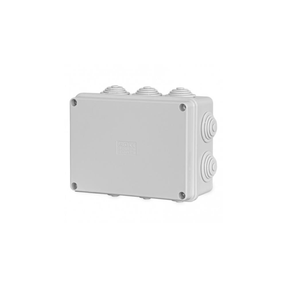 Material : Made of insulating and non-propagating technopolymer, the 650°C glow-wire flame, with high resistance to heat and thermocompression up to 75°C. Impact resistance : IK08. Color : Gray RAL7035. Degree of protection : IP44, IP55, IP56. Installation degree : From -15°C to +60°C. Reference standards : Made according to the following standards: CEI 23-48, IEC60670-1, IEC60670-22. Features : Equipped with internal fixing guides, including terminal blocks, DIN guides and bottom plates. The iron screws are captive and treated against rust. Predisposition for double insulation : Includes cover caps and brackets for external fixing.