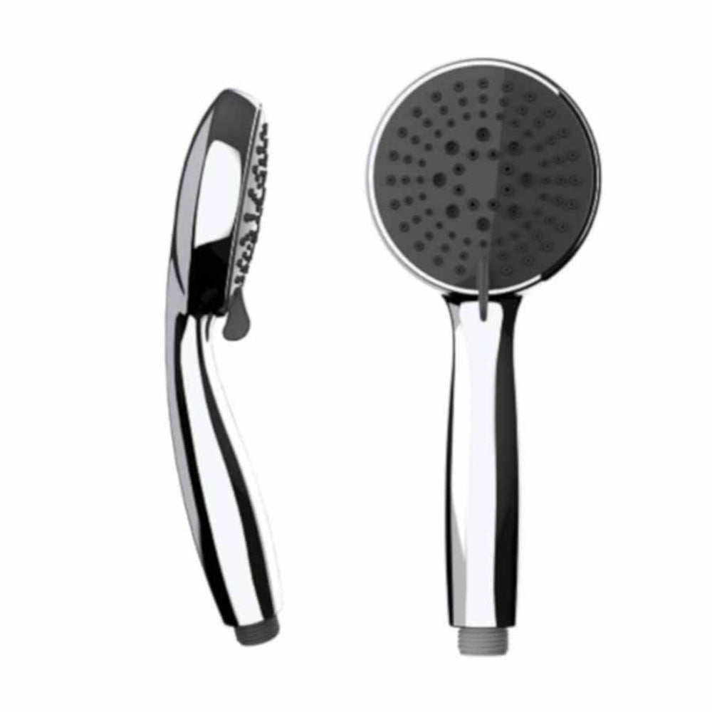 The classic shower head is made of sturdy ABS and covered in shiny silver chrome. The combination with the trendy dark gray gives the shower head a modern look. Equipped with practical knobs that ensure easy limescale cleaning, the hand shower has a long service life. Any limescale deposits on the nozzles can simply be rubbed off with your fingers. The comfortable shower head has a ½” universal connection and is of course also suitable for instantaneous water heaters.