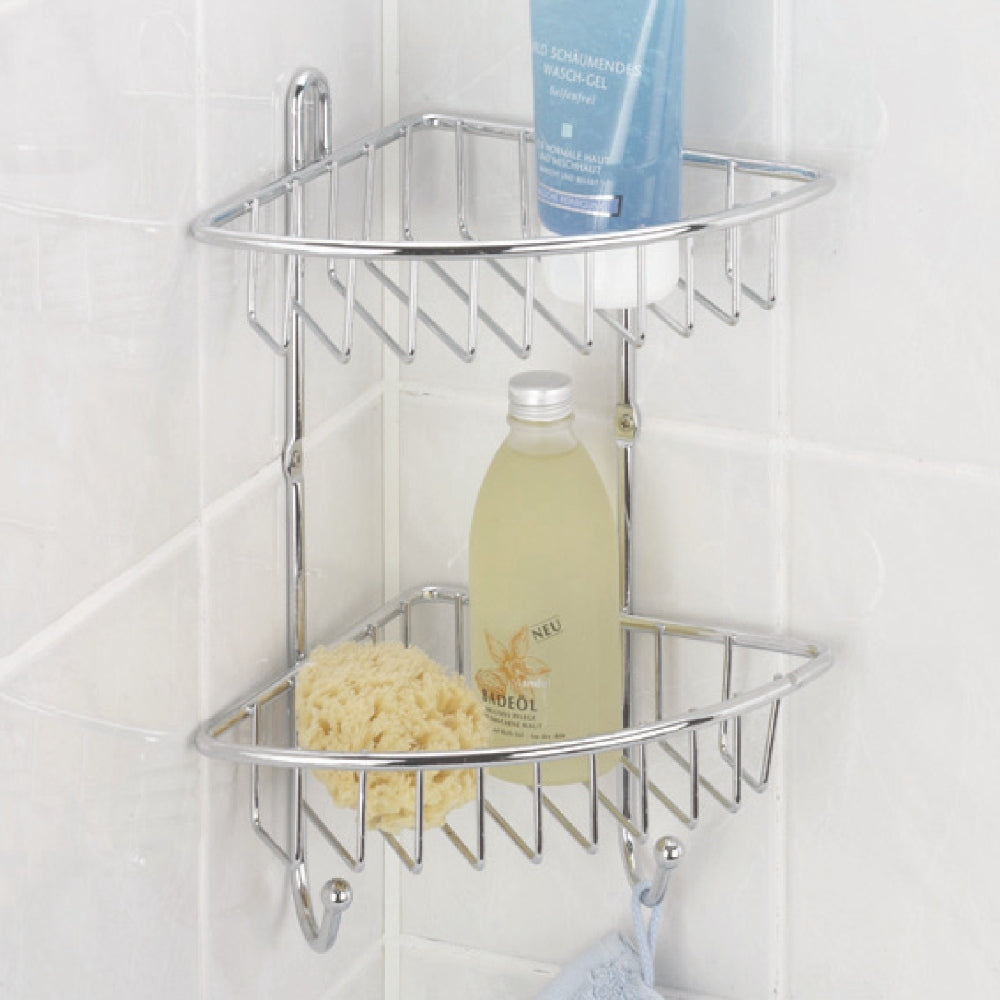 The compact milano shower rack made of chrome-plated steel offers plenty of storage space in the corner of the shower or bathroom for all kinds of bath and cosmetic items with its two baskets. For example, washcloths can be hung on the two extra hooks at the bottom of the corner rack. This decorative shower rack is of very heavy and solid quality. It also includes mounting material (screws and plugs)