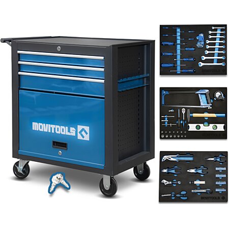 Mobile Workshop Trolley with 3 Drawers + 103 Tools