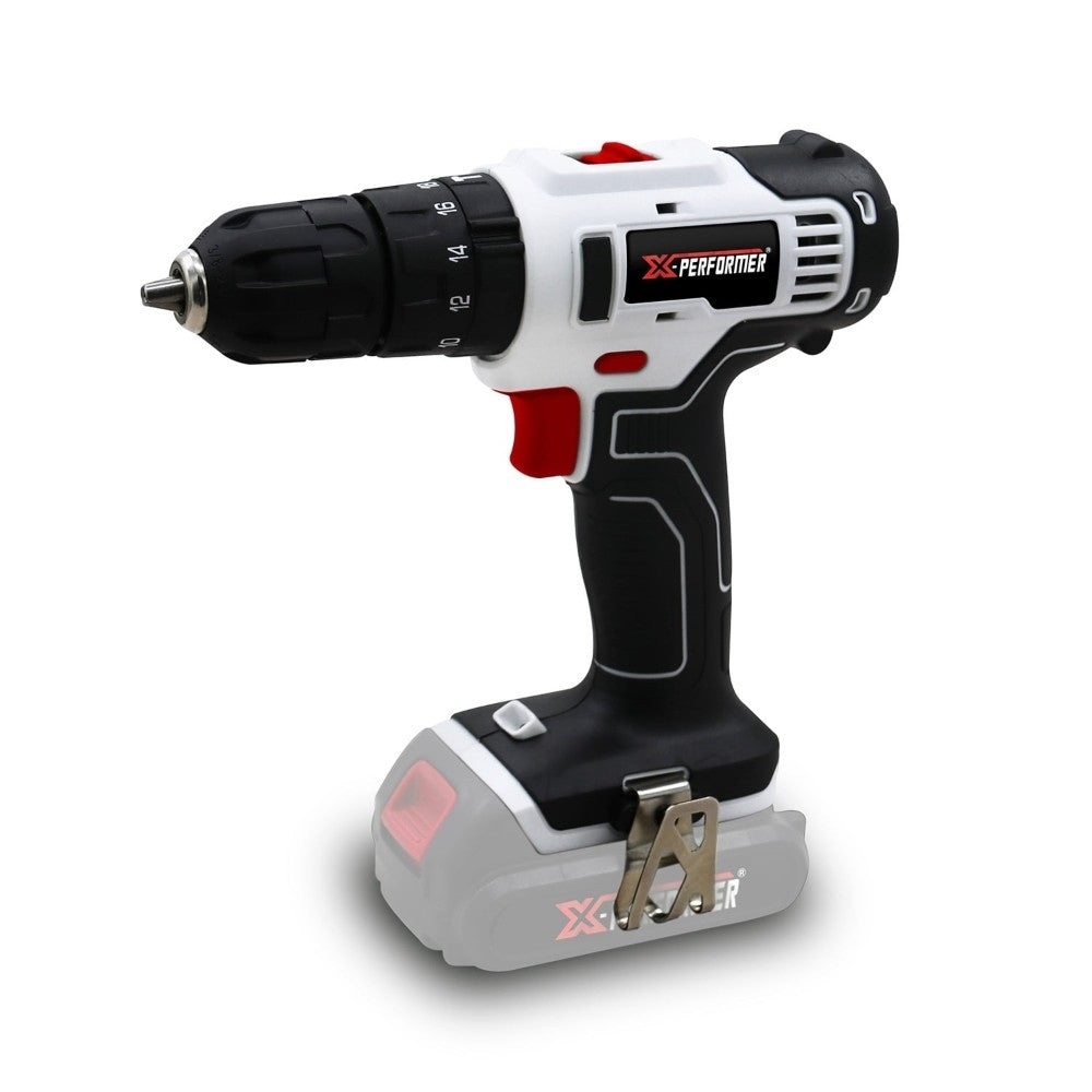 This X-PERFORMER cordless drill 20V is perfect for your job. The same battery fits the entire range of X-PERFORMER tools. With this great ease of use and power, the X-PERFORMER tools are ideal for all your large and small DIY or garden projects. All tools are sold without battery and charger. These can be ordered separately. CHARACTERISTICS: Power 20V Idle speed: 0 - 400 / 0-1400 rpm Chuck automatic 10 mm Maximum torque 27 Nm Link 20+1 positions Drilling capacity steel 10 mm - wood 25 mm 2 speeds LED lamp that illuminates the work area Charging indicator Percussion function, drilling in concrete, cement etc